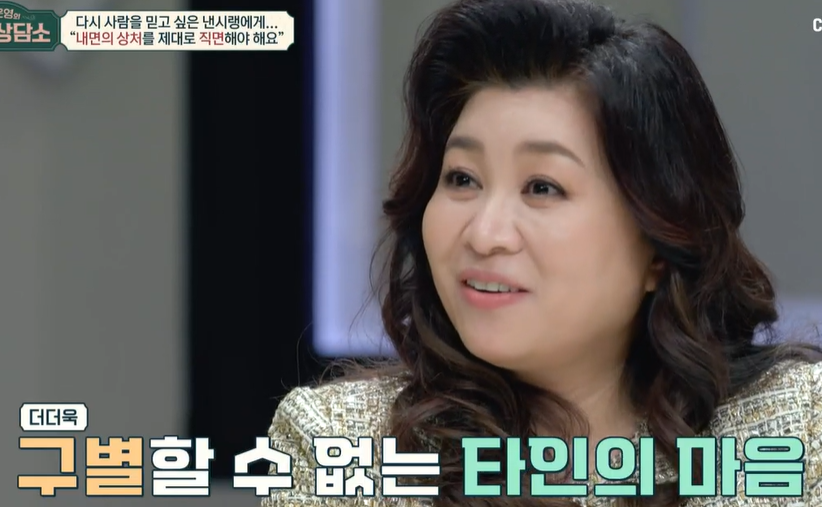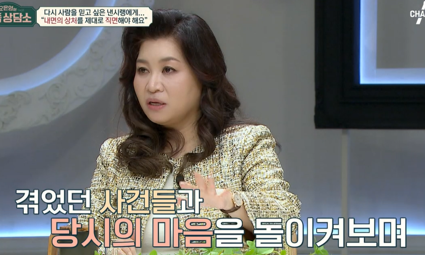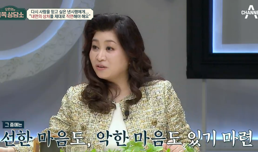 오박사 : 어쨌든 인간은 사람하고 같이 살아가야 되는데, 그리고 사람과 끊임없이 관계를 맺고 살아야 되기 때문에, 사람으로부터 받은 상처가 크고 배신을 많이 당하고 그로 인해 사람이 두려우면 살 수가 없죠. 너무 힘들죠. 말씀 들어보니까 여러 번 반복되는 사람으로부터 어떤 배신들이 있었던 것 같은데요. 그렇습니까?