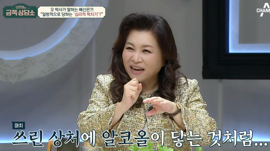 오박사 : 깊은 상처가 없는 사람은 가볍게 넘어갈 일인데, 깊은 상처가 있는 사람은 작은 사건도 너무 아프게 느껴져요.