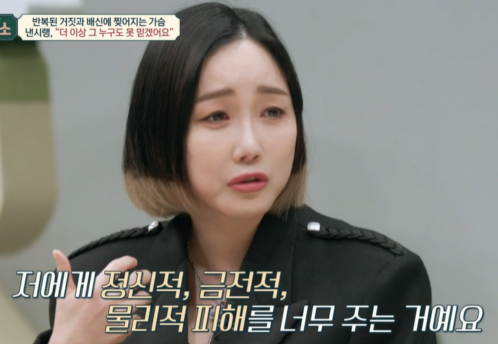 그런데 어쨌든 결론적으로는 상대방들이 거짓말을 하고 바뀌고 저한테 정신적인 거나 금전적인 거나 물리적인 거나 이런 피해를 저한테 너무 주는 거예요.